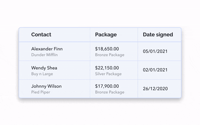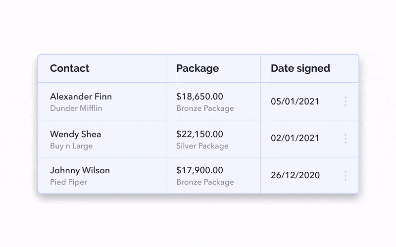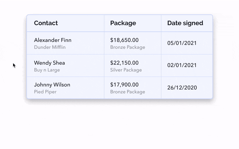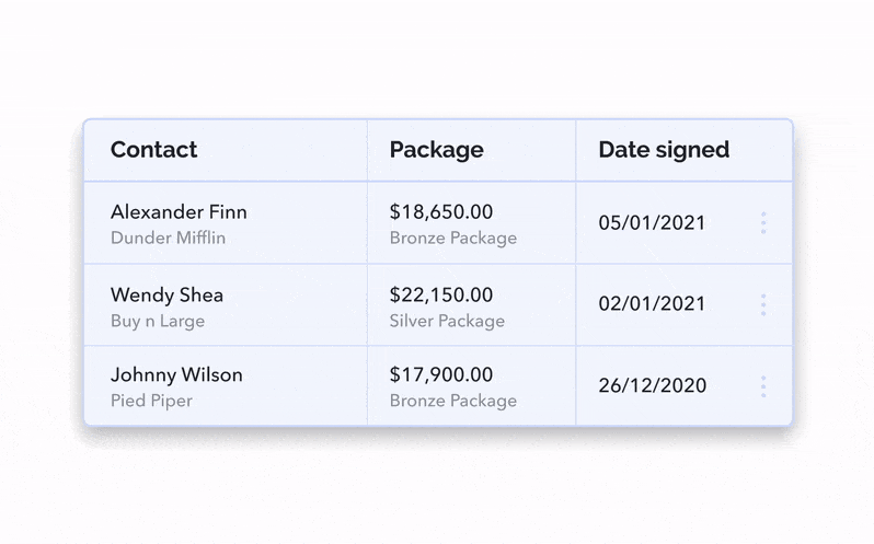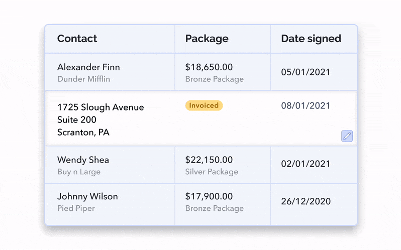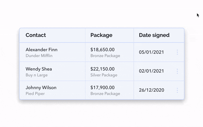 Quando toda a linha parece clicável ao passar o mouse, isso vai sugerir ao usuário que existem mais detalhes em uma visualização secundária. É possível que suas linhas contenham apenas dados genéricos sobre as entradas, mas que mais detalhes qualitativos sobre elas também precisem ser exibidos. Qual é a melhor maneira de exibir informações adicionais de linha dentro de uma interface de usuário de tabela? Depende dos seus recursos de desenvolvimento e da quantidade de informações que precisam ser mostradas. Vejamos algumas opções possíveis: