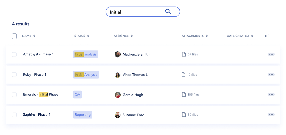 As tabelas têm como objetivo encontrar informações e geralmente são apresentadas no contexto de uma funcionalidade de pesquisa ou localização. Para facilitar a “correspondência mental” entre a pesquisa e o resultado, considere destacar as correspondências nas linhas.